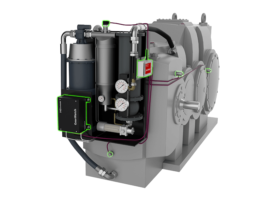 GearWatch peut être adapté à vos paramètres d’exploitation, et toutes les données sont vérifiées par des experts en réducteurs dans notre centre de contrôle. Non seulement ce système mesure les évolutions au sein du réducteur, mais il peut également surveiller tout un tas d’équipements, comme par exemple les moteurs, les systèmes hydrauliques et les roulements si nécessaire.