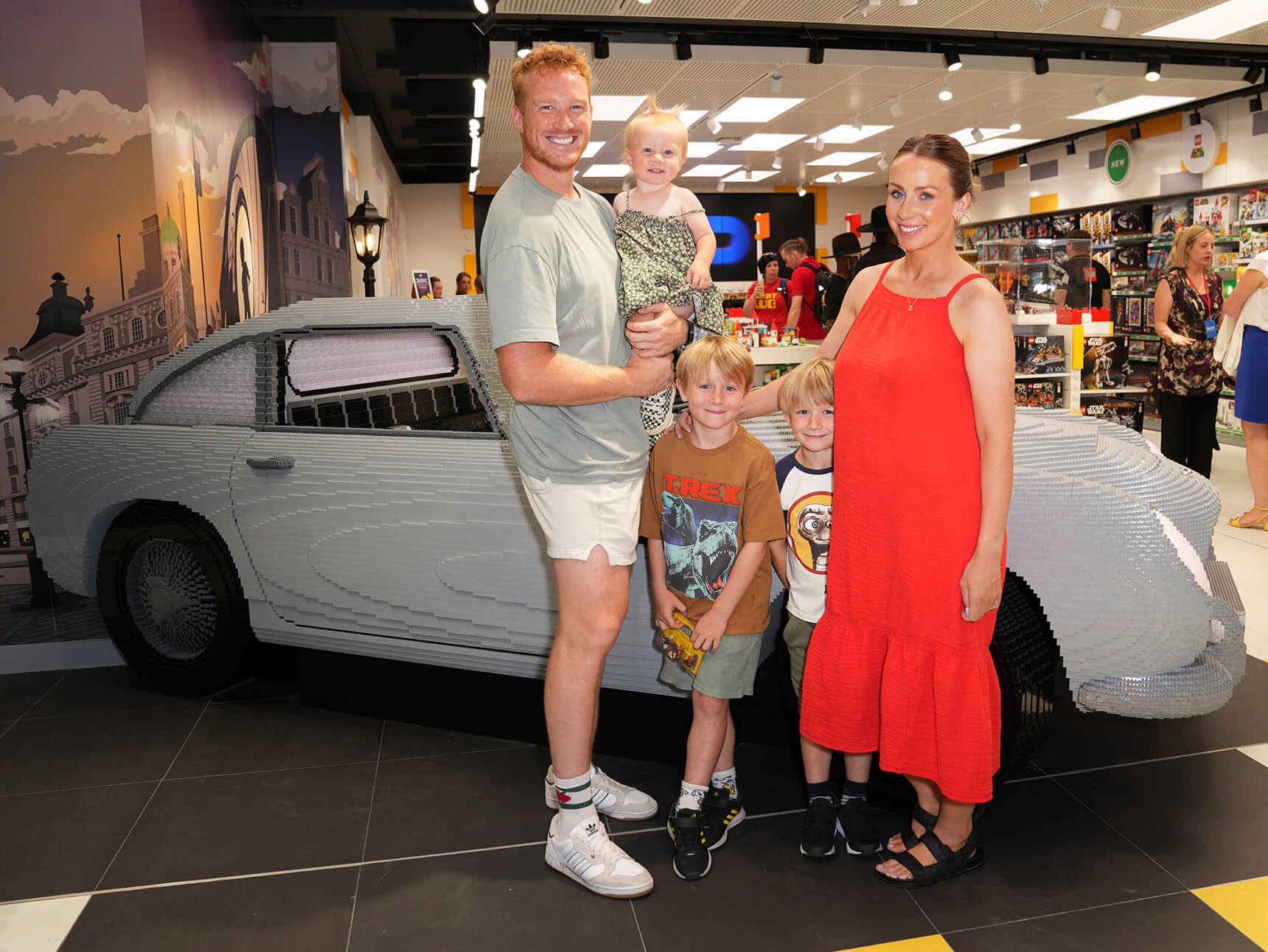 Photography credit: copyright owned by LEGO® Group. Special thanks to the LEGO® Group for providing images to support this article, the image shown features Greg Rutherford and family with the Aston Martin display car.